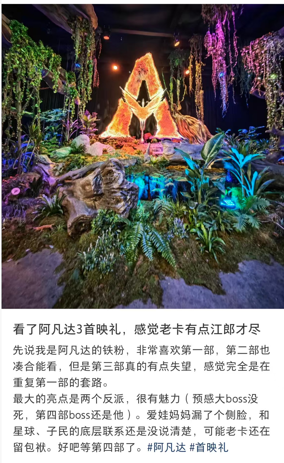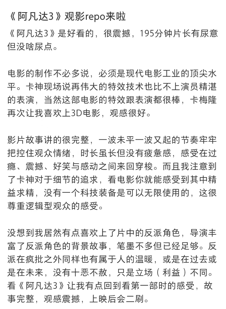 还有有赞有弹的评价“视效依旧会觉得好美好清晰好震撼,但剧情也真的是越来越拉胯了。”